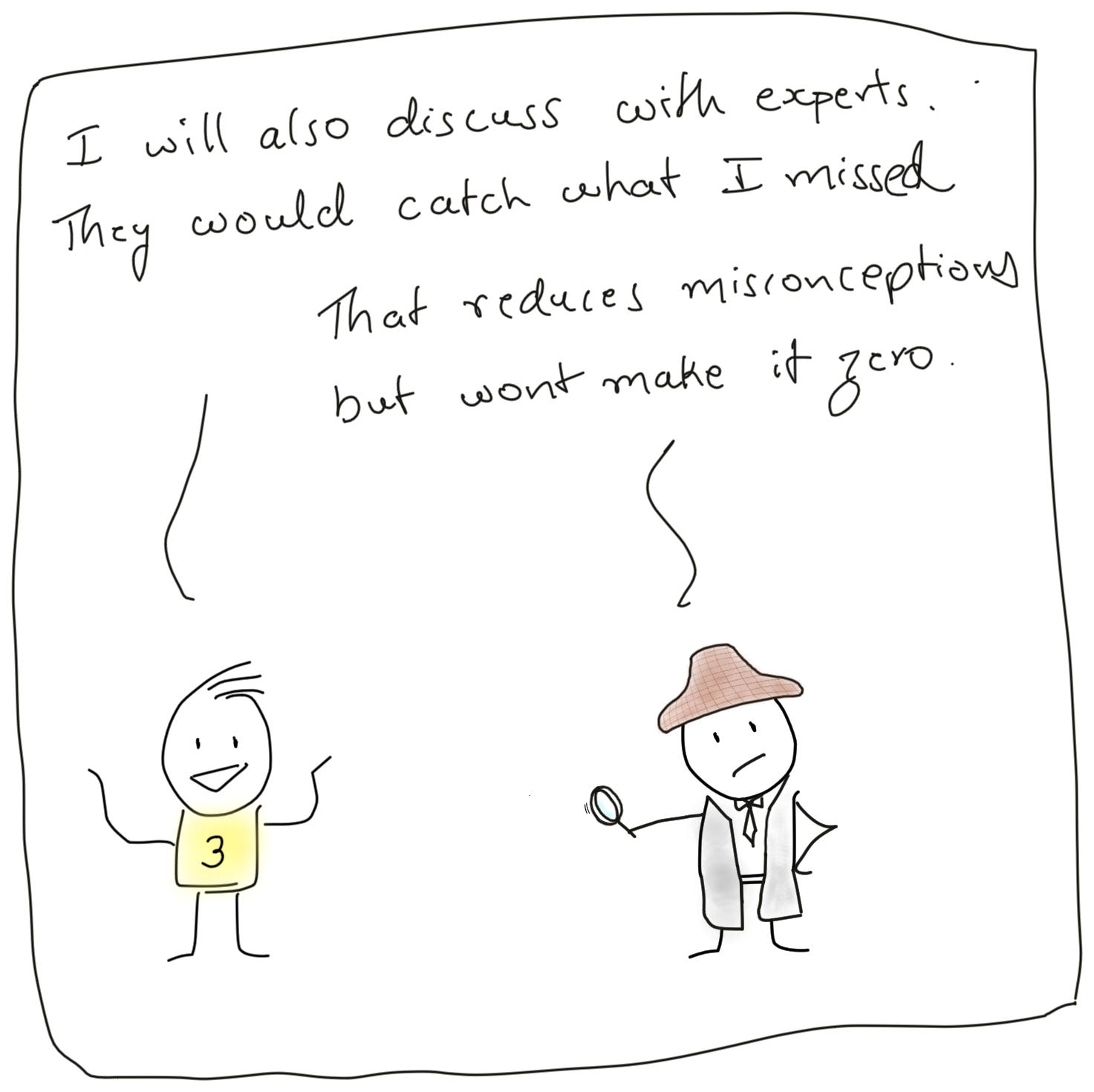 No two people think alike. Very rarely do two people make the same mistakes while doing a task. This technique capitalizes on this observation. When you discuss with someone, they will question you on unclear parts and correct you on the incorrect details and vice versa. It is even better when the 2nd person is an expert!